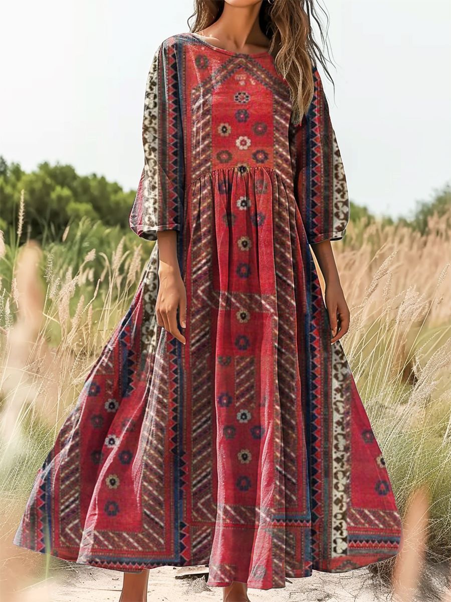 Women's Ethnic Tattoo Pattern Art Print Cotton Round Neck Dress