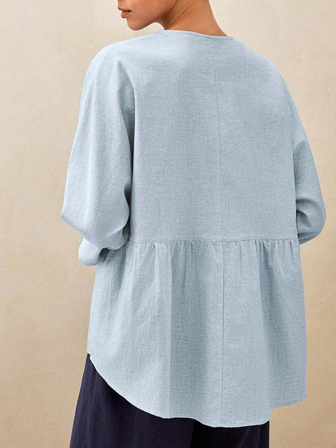 Women's Linen Crew Neck Casual Long Sleeve Top
