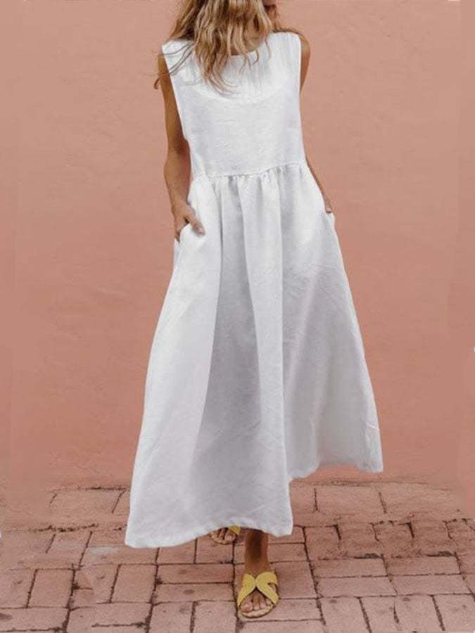 Women's Sleeveless Pleated Cotton Dress