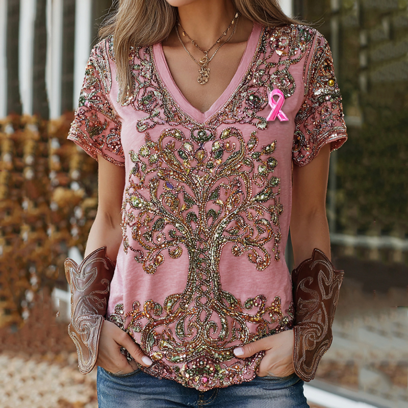 Women's Tree Of Life Breast Cancer Ribbon Casual T-shirt