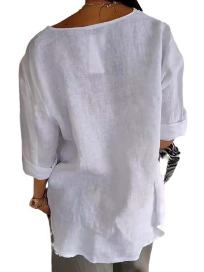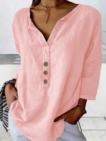 Women's V-Neck Long Sleeve Loose Button Design Casual Shirt