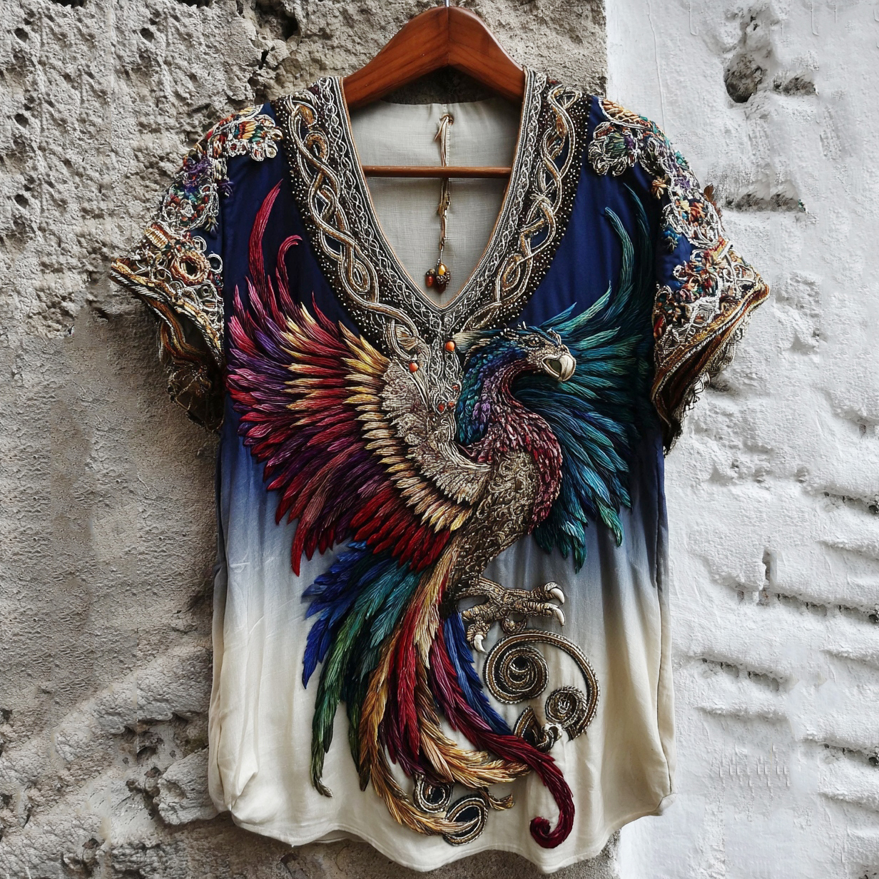 Women's Viking Celtic Knot Phoenix Totem Gradient Linen T-shirt