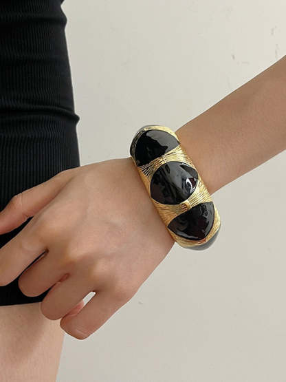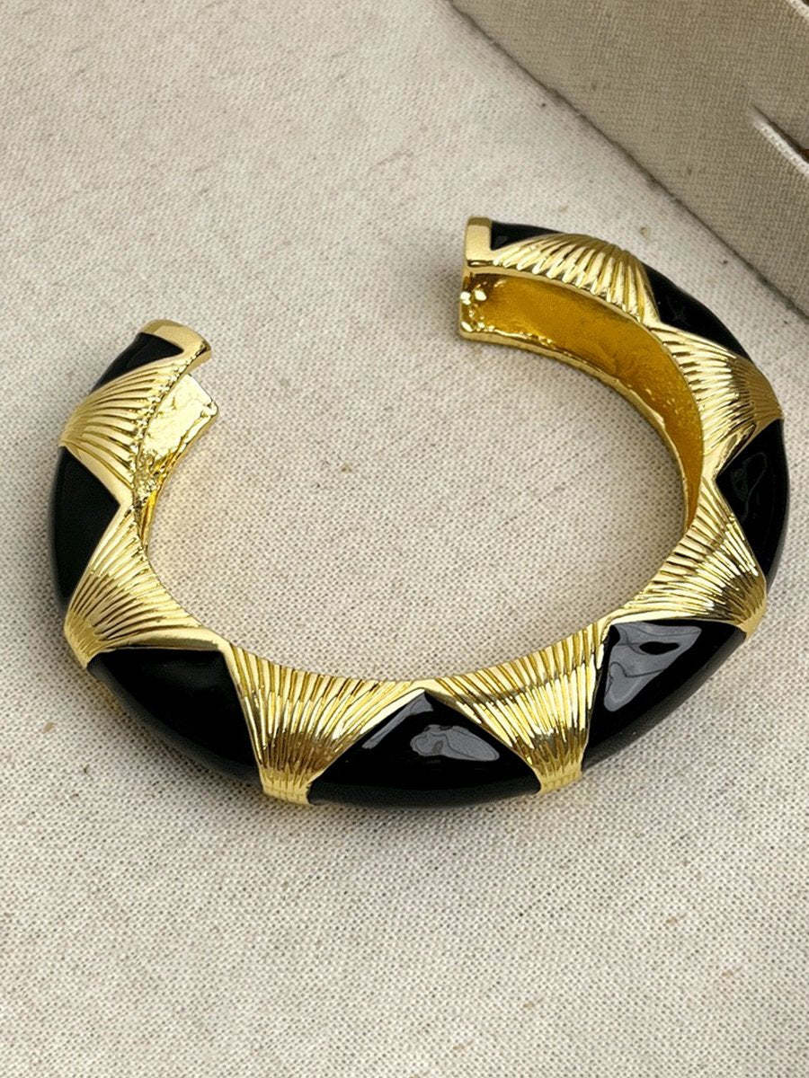 Women's Vintage Black Gold Enamel Open Bracelet