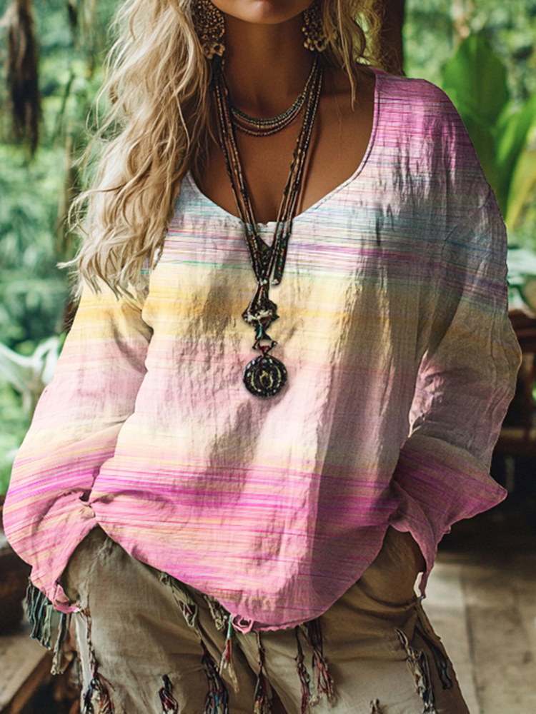 Women's Vintage Cancer Awareness Ribbon Gradient Long Sleeve T-shirt