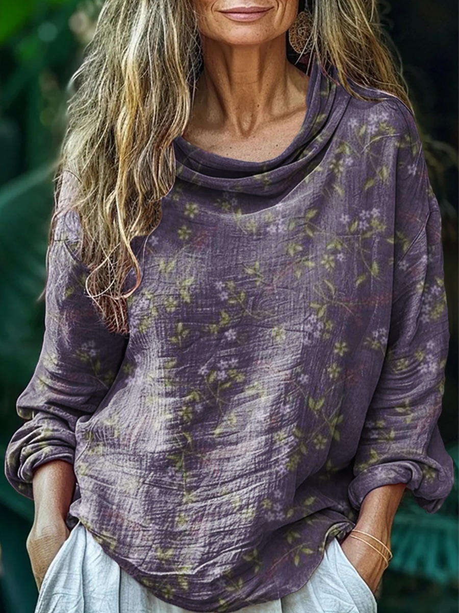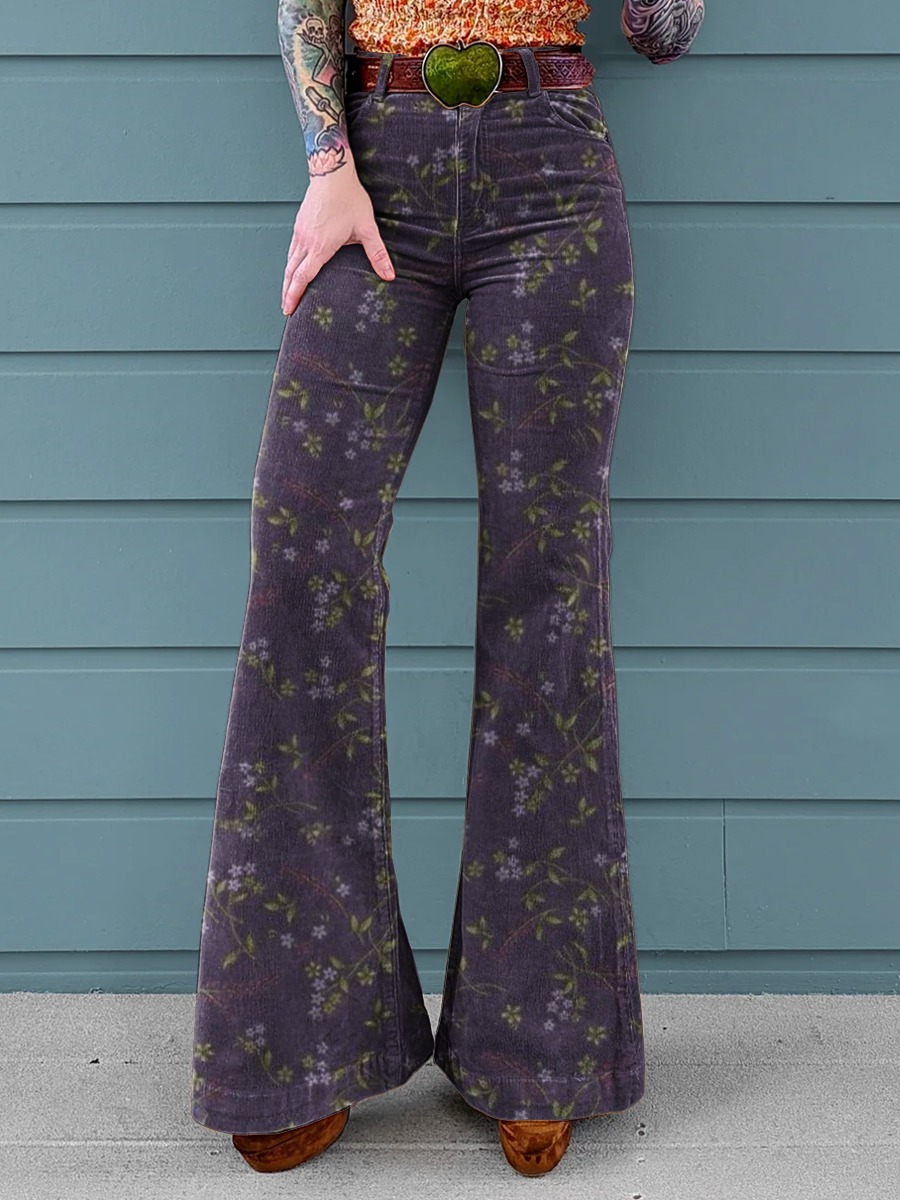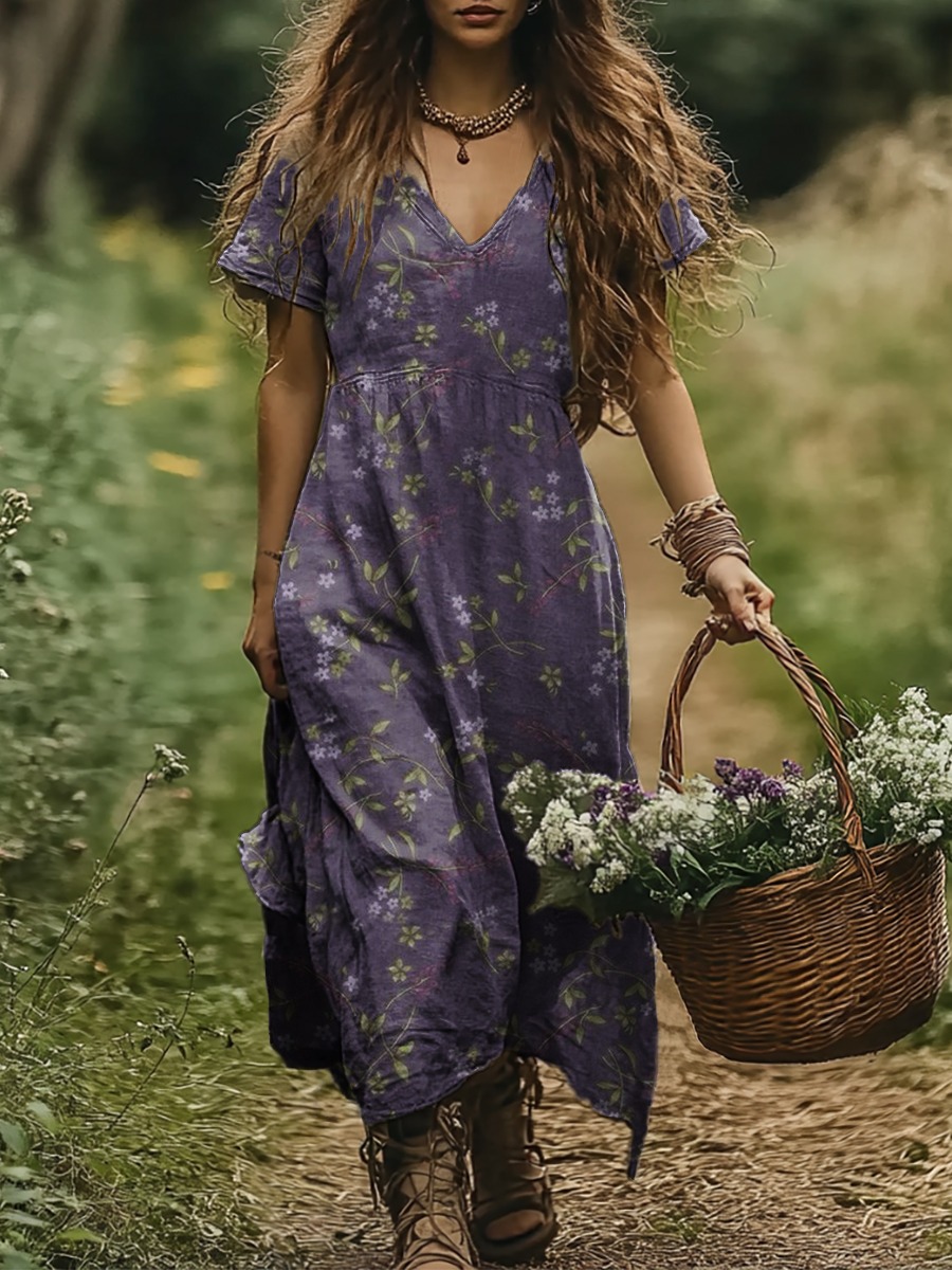 Women's Vintage Floral Art Print Pocket Cotton Dress