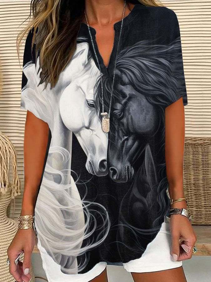 Women'S Vintage Horse Art Print Short Sleeve Shirt