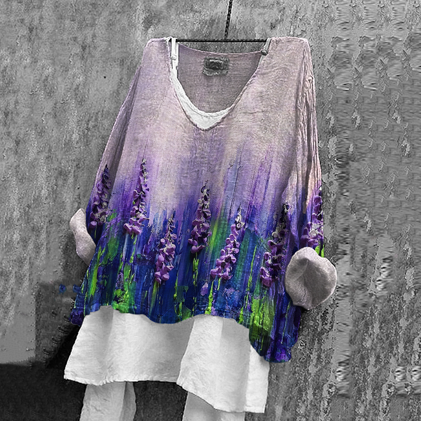 Women's Vintage Purple Flower Art Linen Casual T-shirt