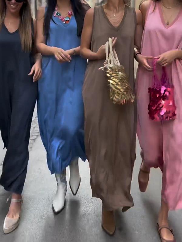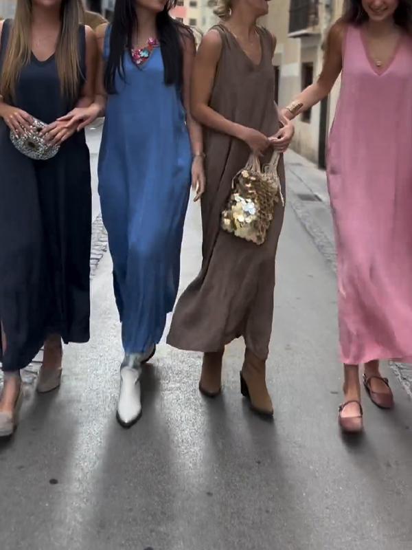 Casual V-neck Satin Dress