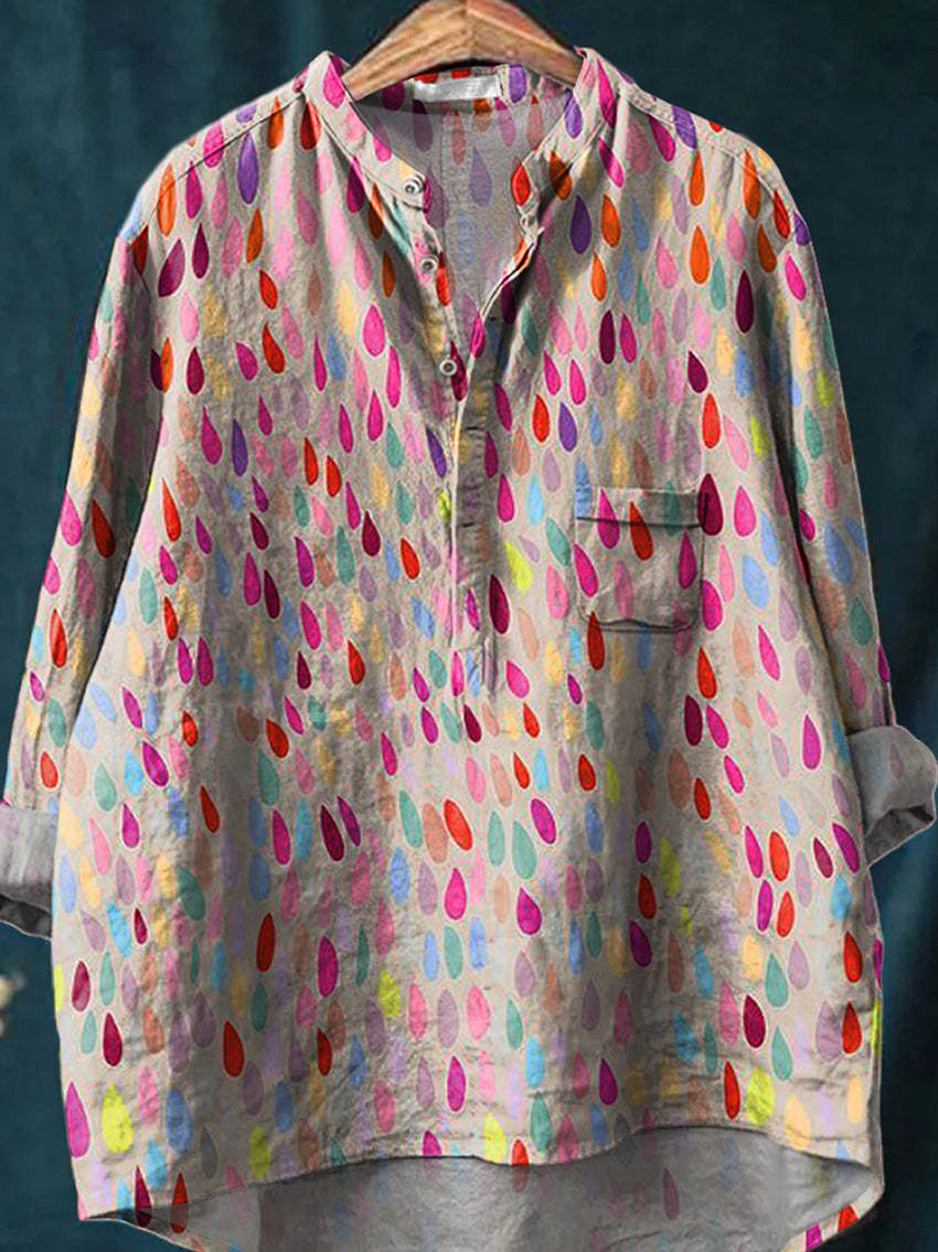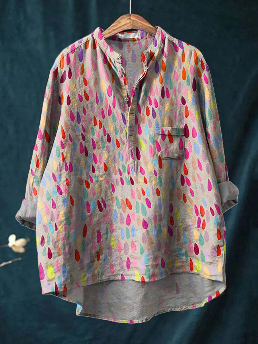 Colorful Water Droplet Pattern Printed Women's Casual Long Sleeve Comfortable Cotton Shirt