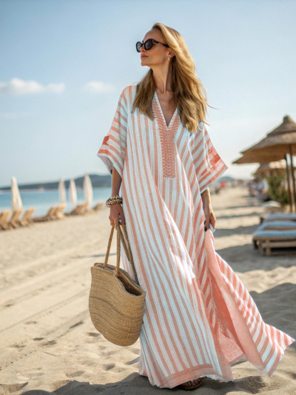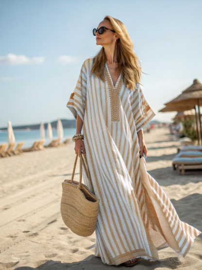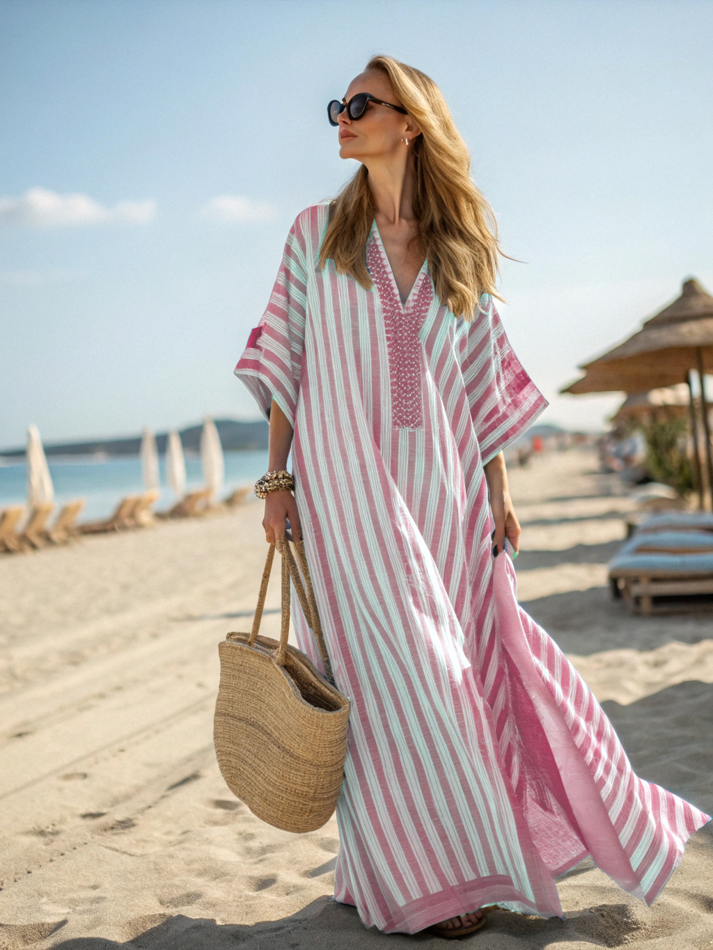 Contton & Linen Long Sleeve Kaftan Maxi Dress