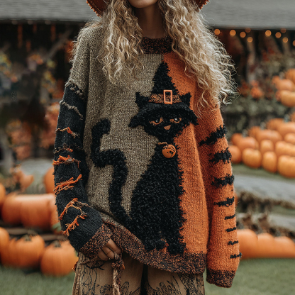 Halloween Cute Witch Cats Art Cozy Knit Sweater