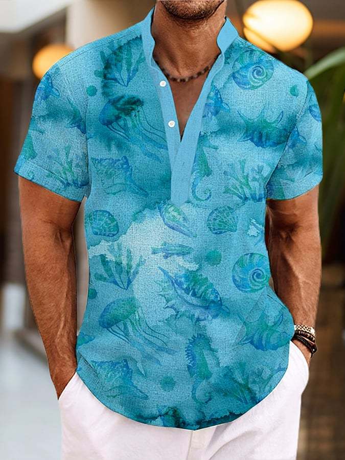 Men's Casual Hawaiian Print Stand Collar Shirt