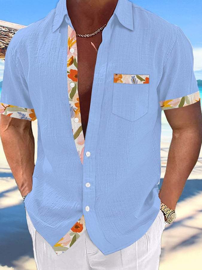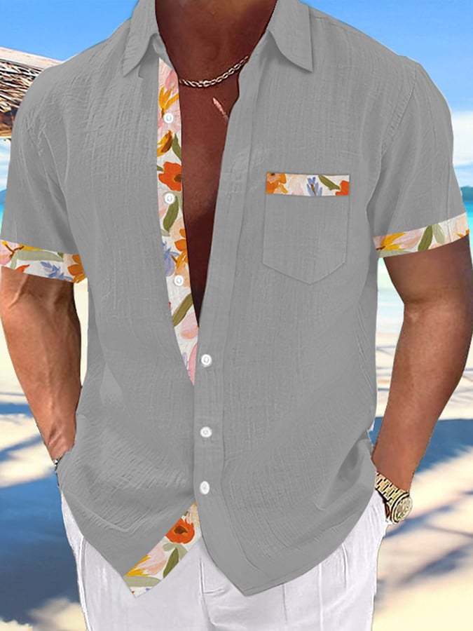 Men's Hawaiian Fashion Print Resort Casual Shirt (With Pockets)
