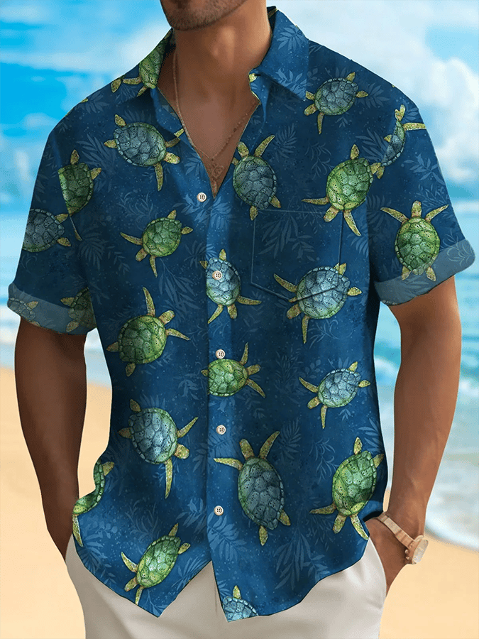 Men's Hawaiian Tropical Print Casual Pocket Short Sleeve Shirt