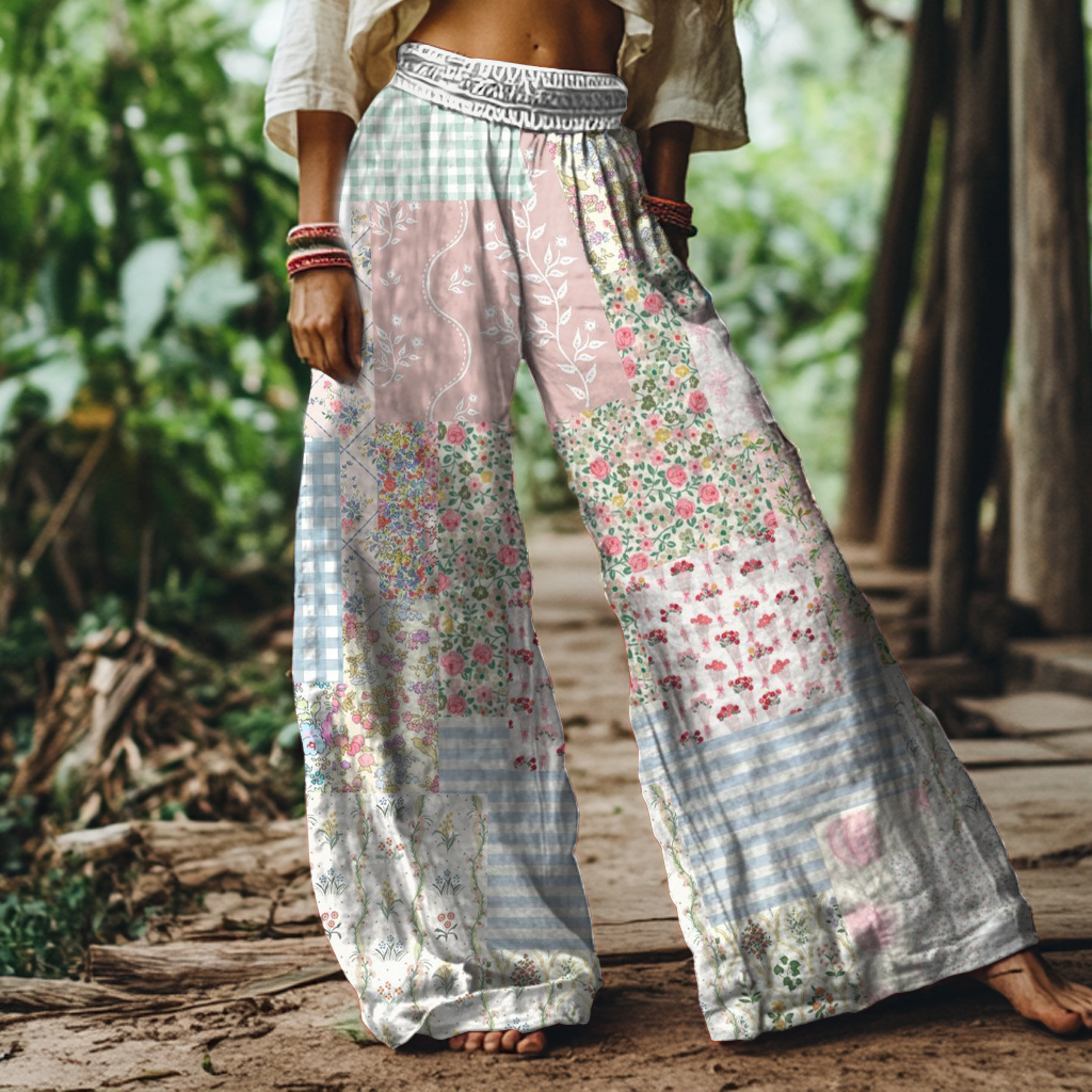 Vintage Bohemian Floral Print Loose Wide-leg Pants