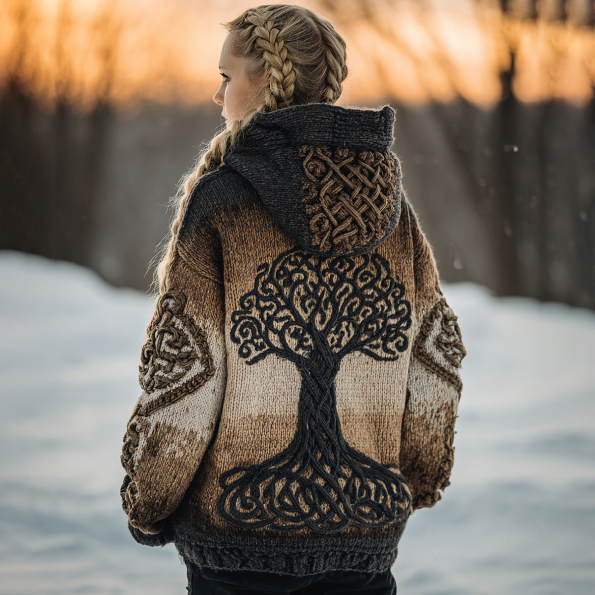 Vintage Tree Of Life Tie-dye Cozy Chunky Button Sweater Cardigan