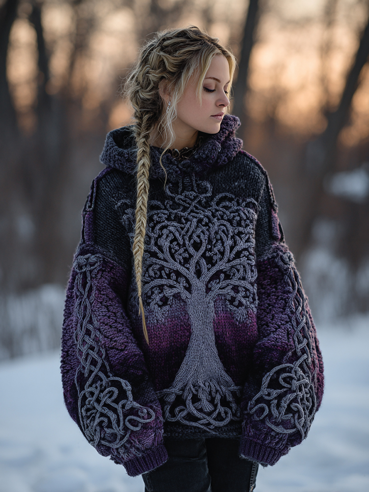 Vintage Tree Of Life Tie-dye Cozy Chunky Sweater