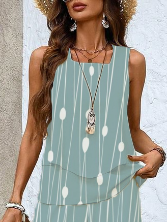 Women's Striped Printing Two-Piece Set Daily Sleeveless Casual Summer Top With Pants Matching Set