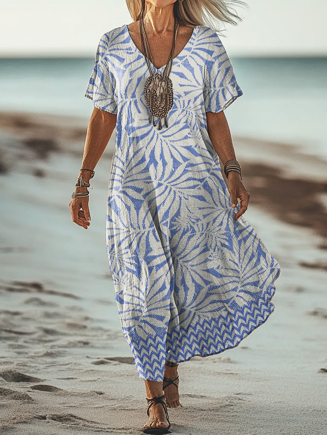 Women's Art Floral Hippie Vintage Print V Neck Dress