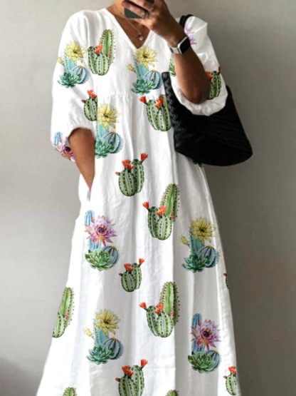 Women's Artistic Rose Holiday Floral Pattern Cotton Dress