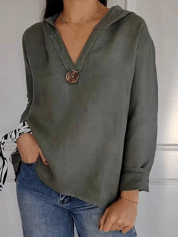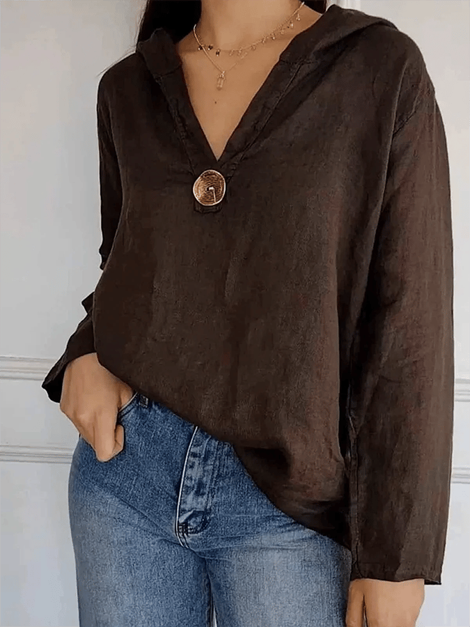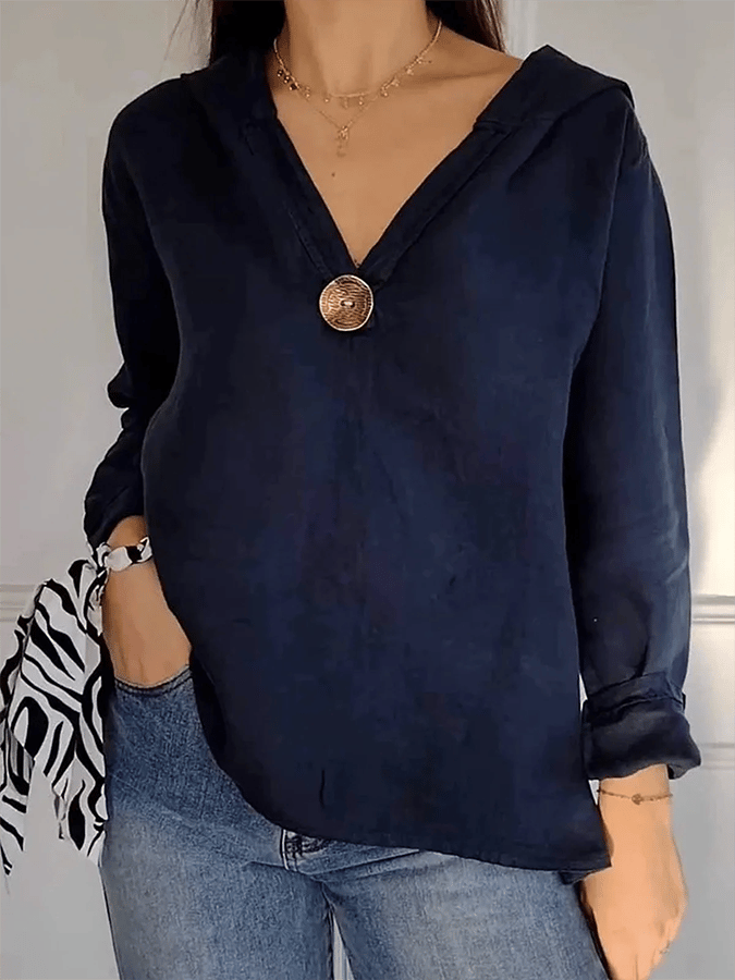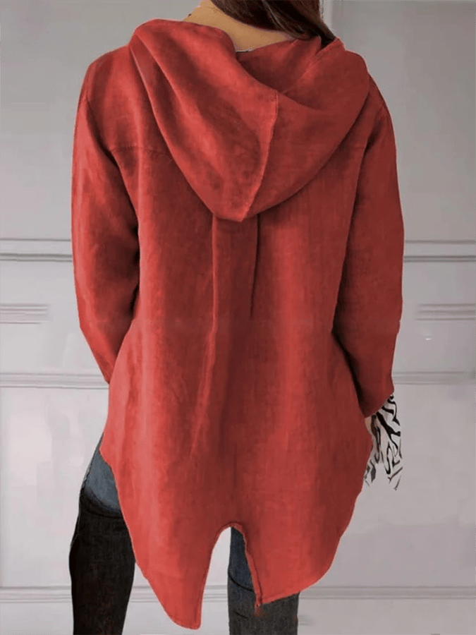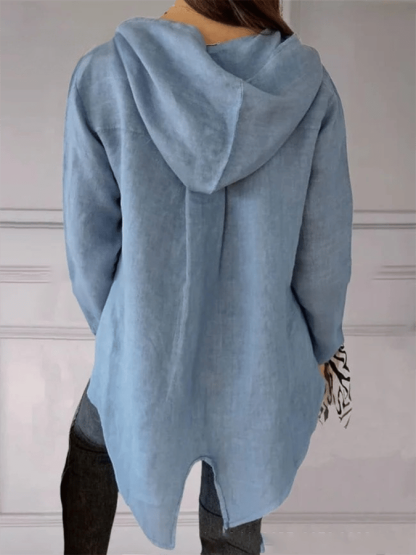Women's Button Down Hooded Tuxedo Solid Color Shirt