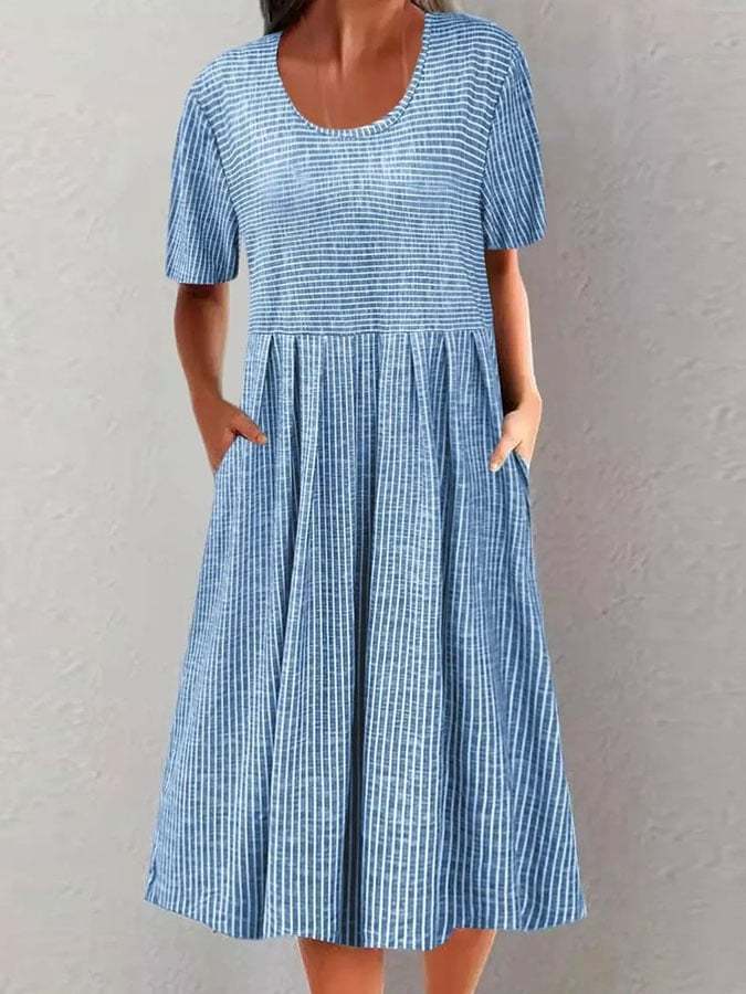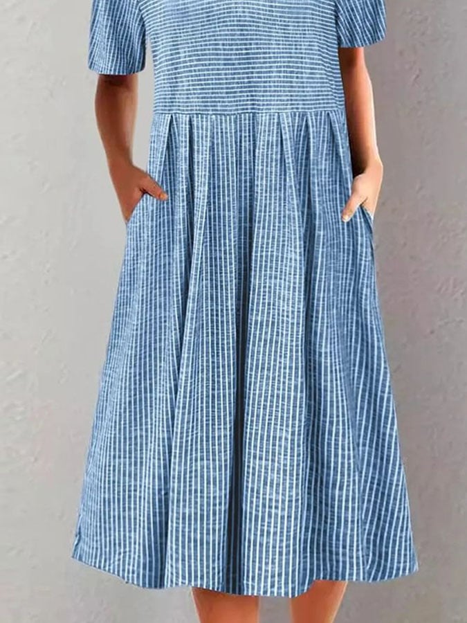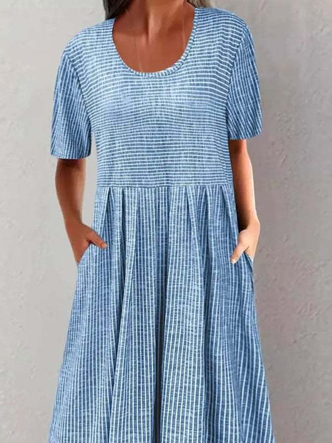 Women's Casual Round Neck Short Sleeve Striped Print Dress