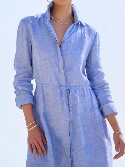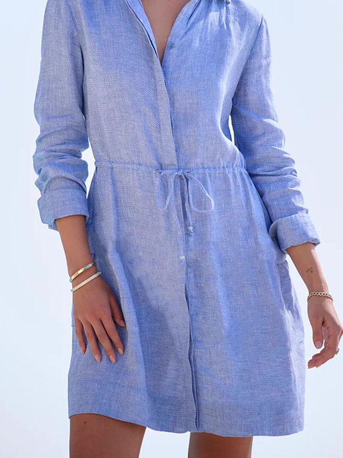 Women's Casual Solid Color Lapel Short Sleeve Button Dress