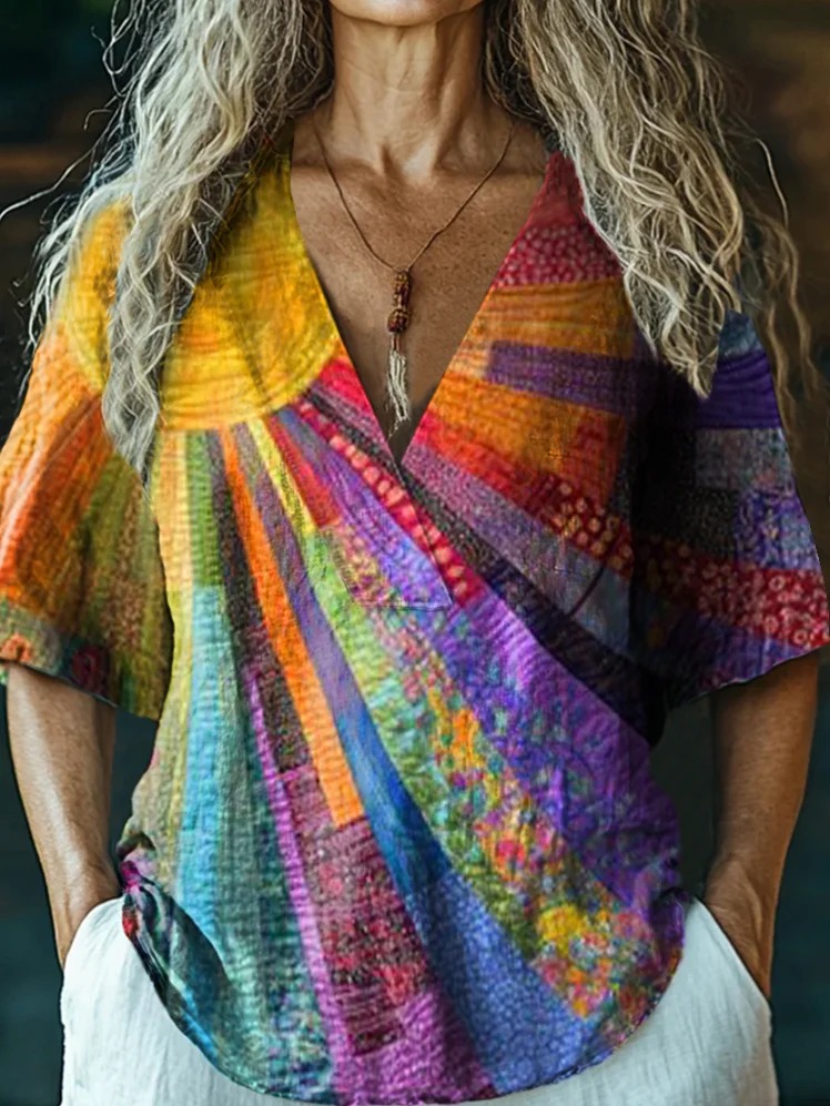 Women's Colorful Sunshine Print Pocket Cotton Dress