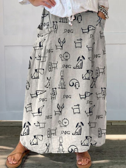 Women's Cute Dog Print Casual Cotton And Linen Shirt