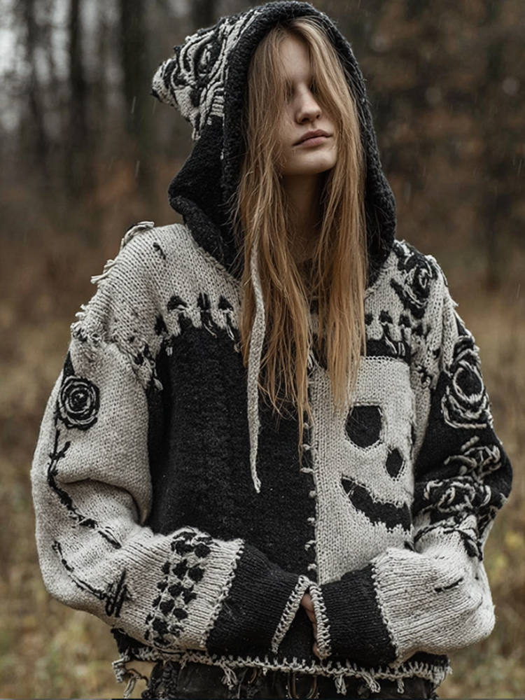 Women's Funny Smiley Face Black And White Hooded Sweater