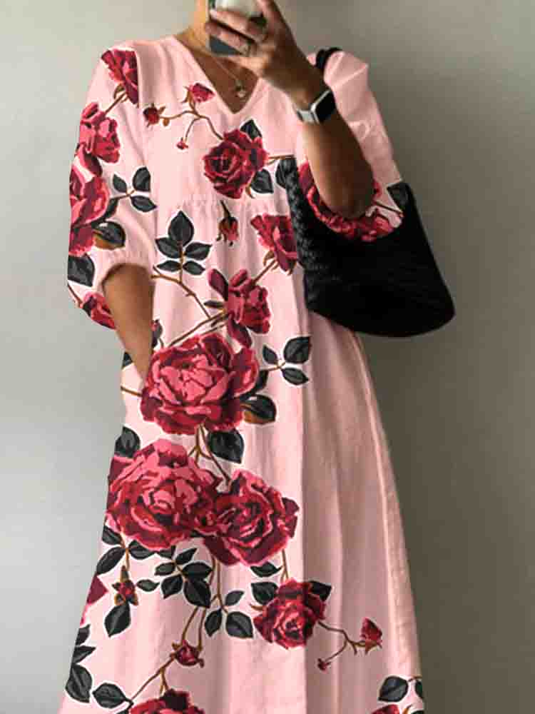 Women'S Holiday Rose Floral Pattern Cotton Dress