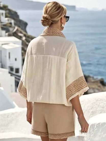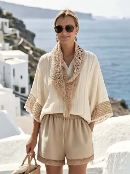 Women'S Loose Lace Stitching Neck Shorts Set