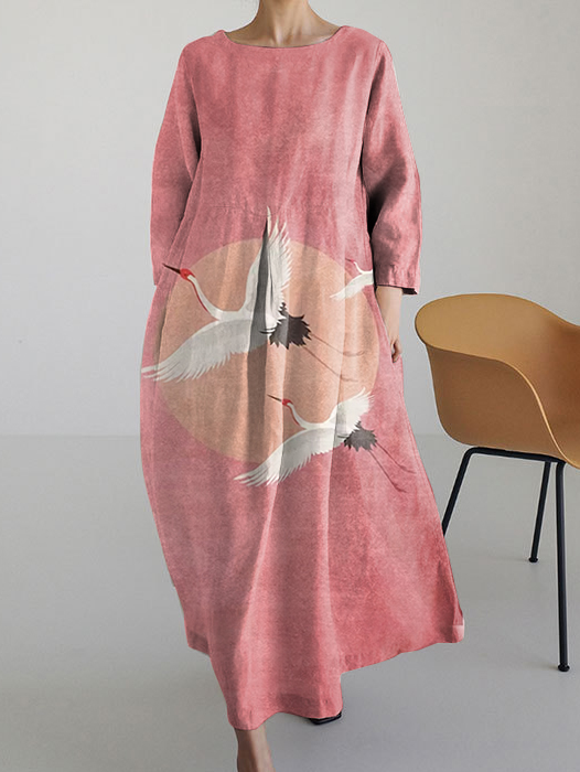Women's Retro Japanese Feihe Round Neck Long Sleeve Dress
