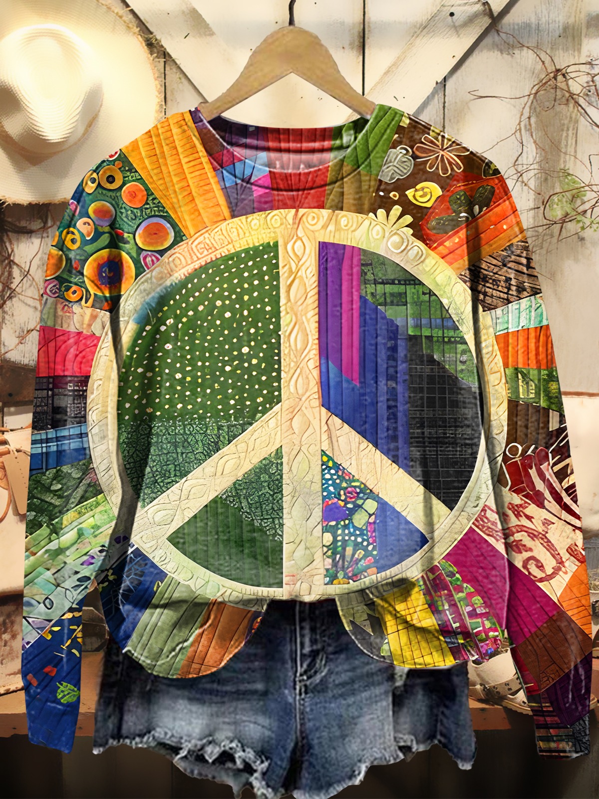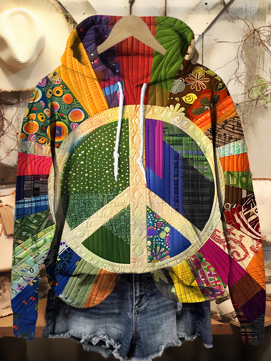 Women's Retro Peace Pattern Print Pocket Cotton Dress