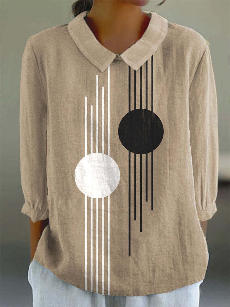 Women's Vintage Abstract Geometric Art Print Casual Cotton And Linen 3/4 Sleeve Shirt