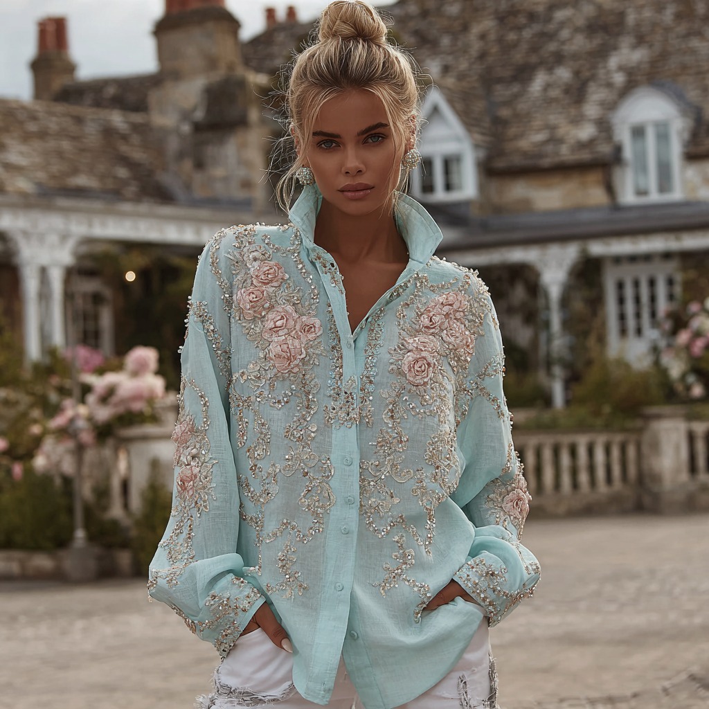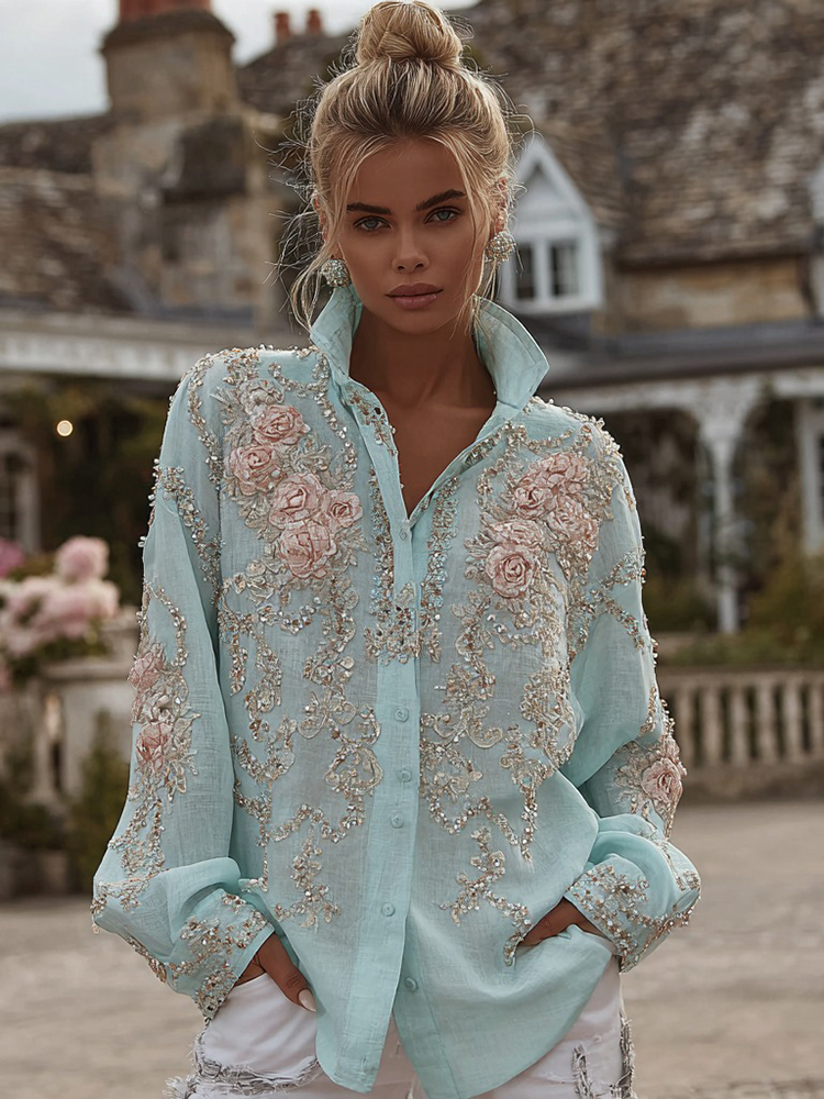 Women's Vintage Bohemian Floral Embroidered Casual Shirt