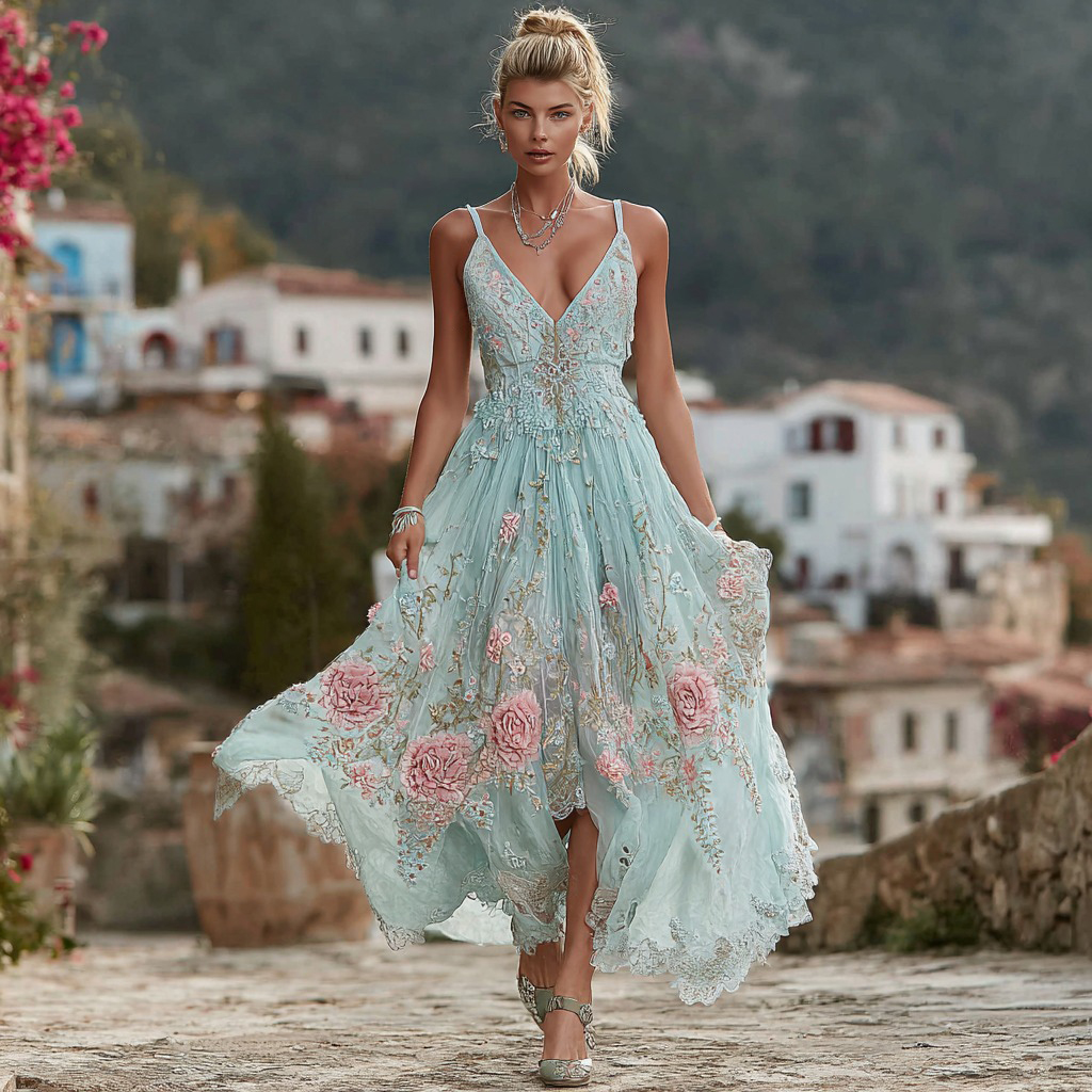 Women's Vintage Bohemian Floral Embroidery Casual Sleeveless Dress