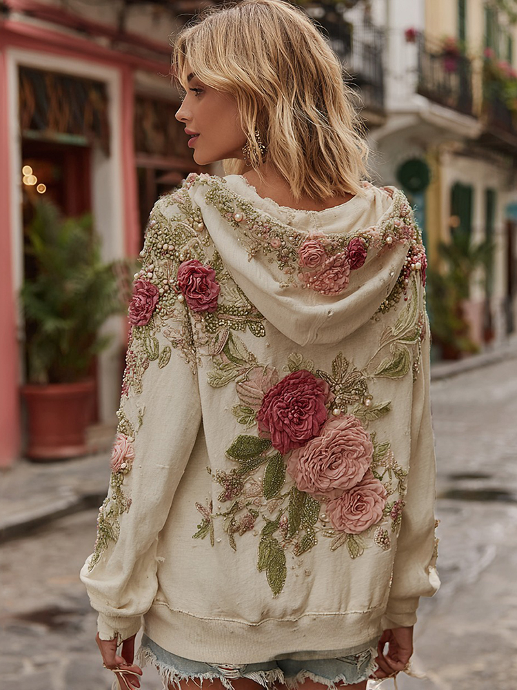 Women's Vintage Floral Embroidery Art Cozy Hoodie