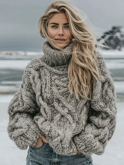Women's Vintage Island Knit Aran Cozy High Neck Sweater