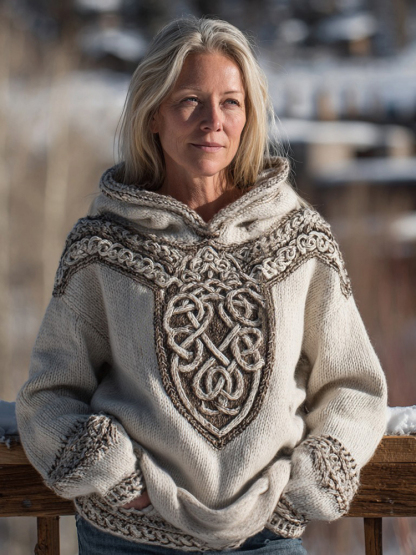 Women's Vintage Viking Celtic Rune Knit Hooded Sweater