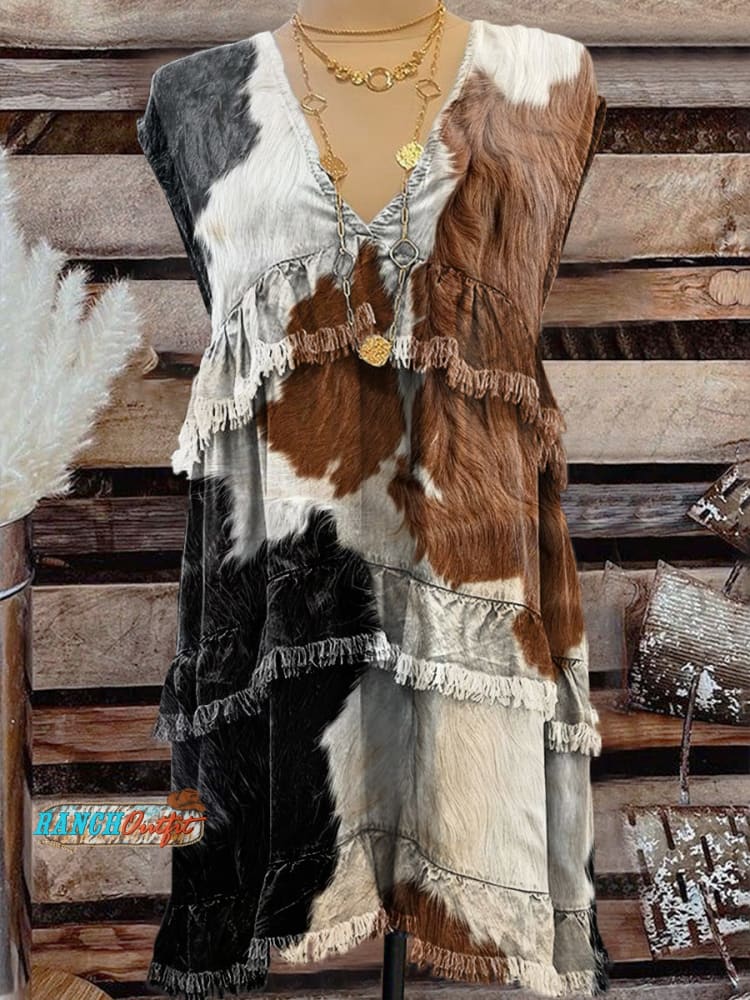 Women's Vintage Western Art Print Denim Pocket Cotton Dress