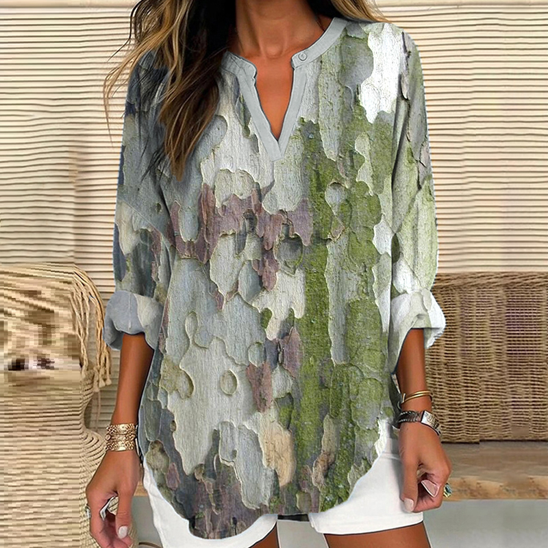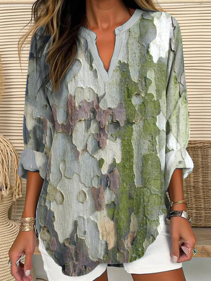 Women's Western Textured Print Linen-blend Shirt