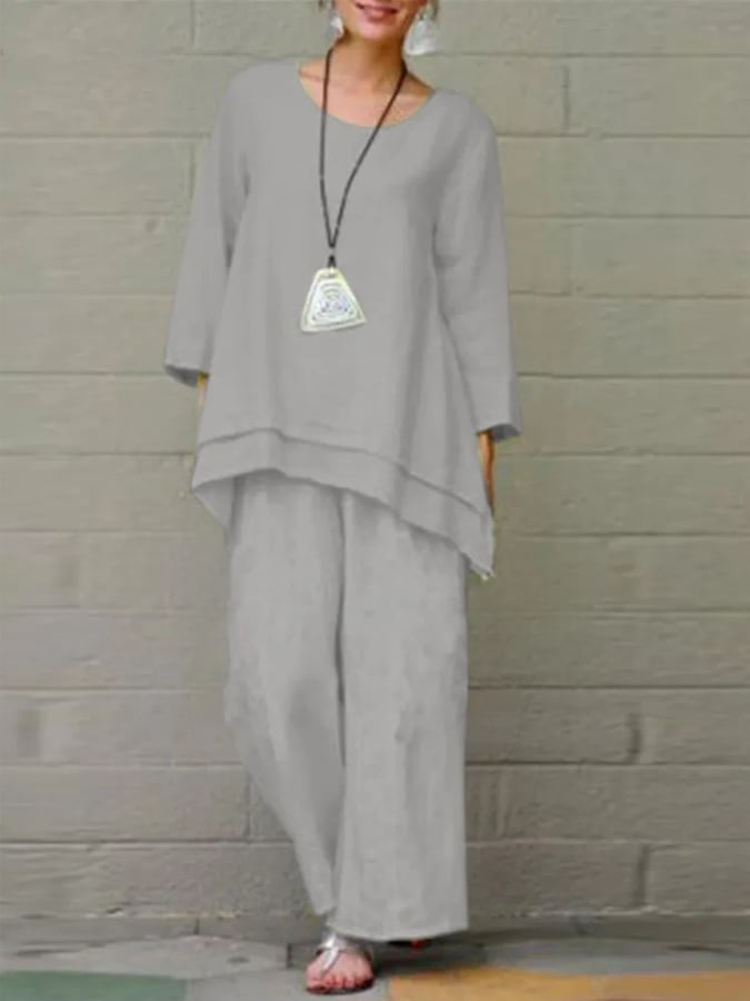 Women's Fashion Loose Cotton And Linen Two-Piece Suit