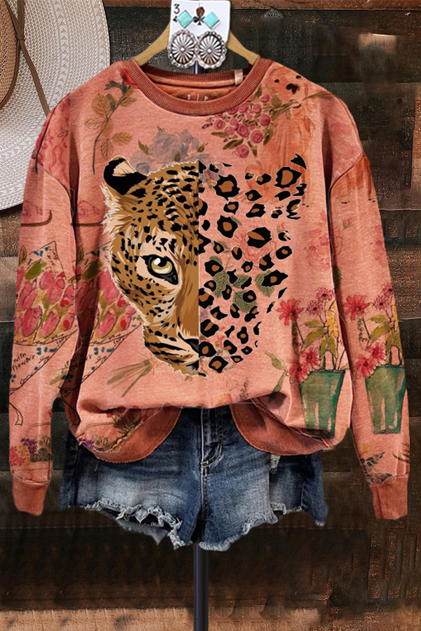 Floral Leopard Print Sweatshirt