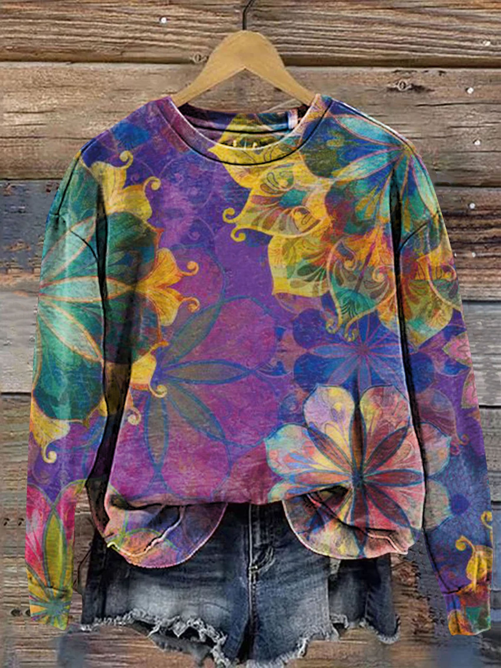 Vintage Floral Print Casual Sweatshirt