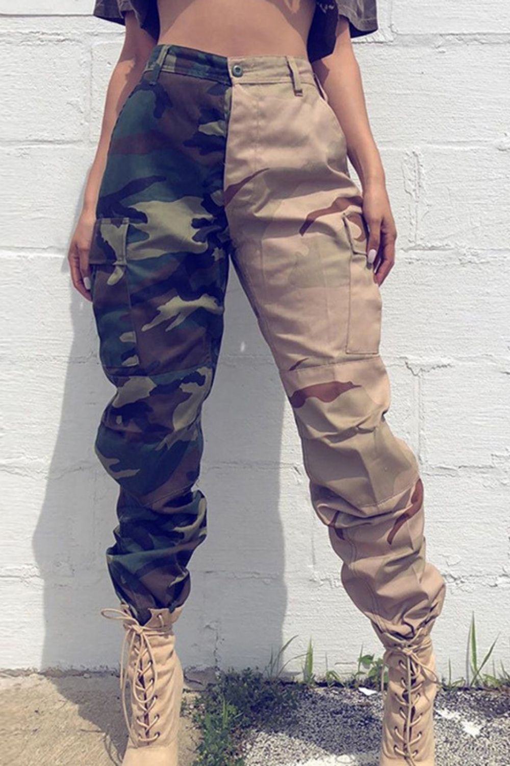 Ladies Jogging Patchwork Camo High Waist Cargo Pants
