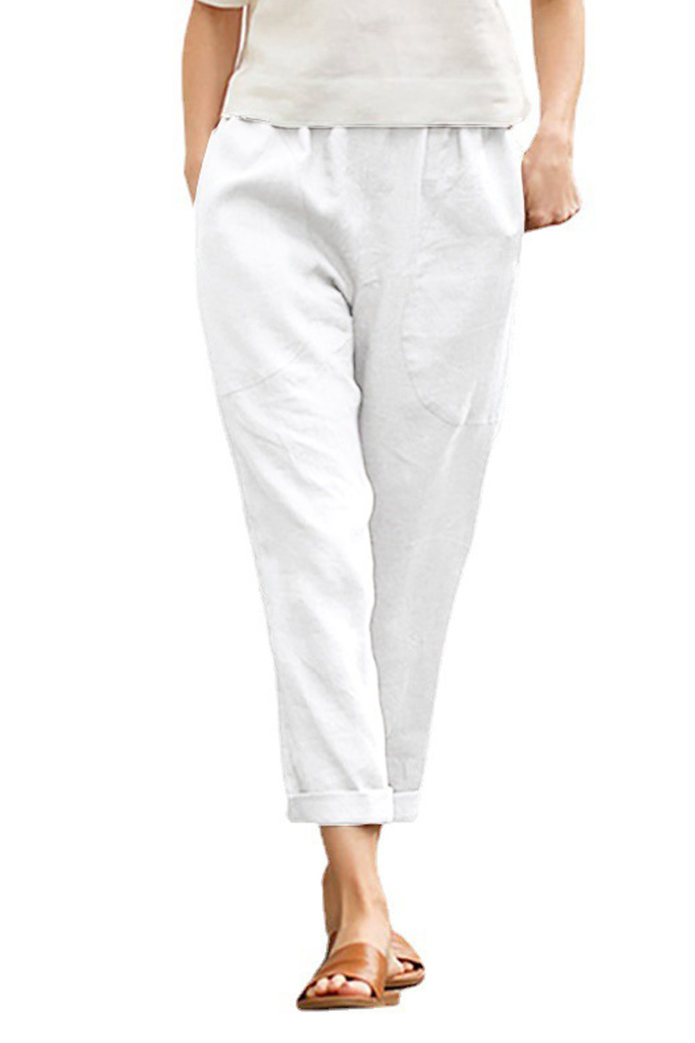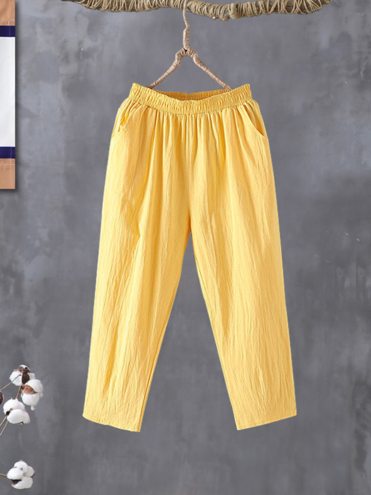 Women's Solid Cotton Linen Casual Pants