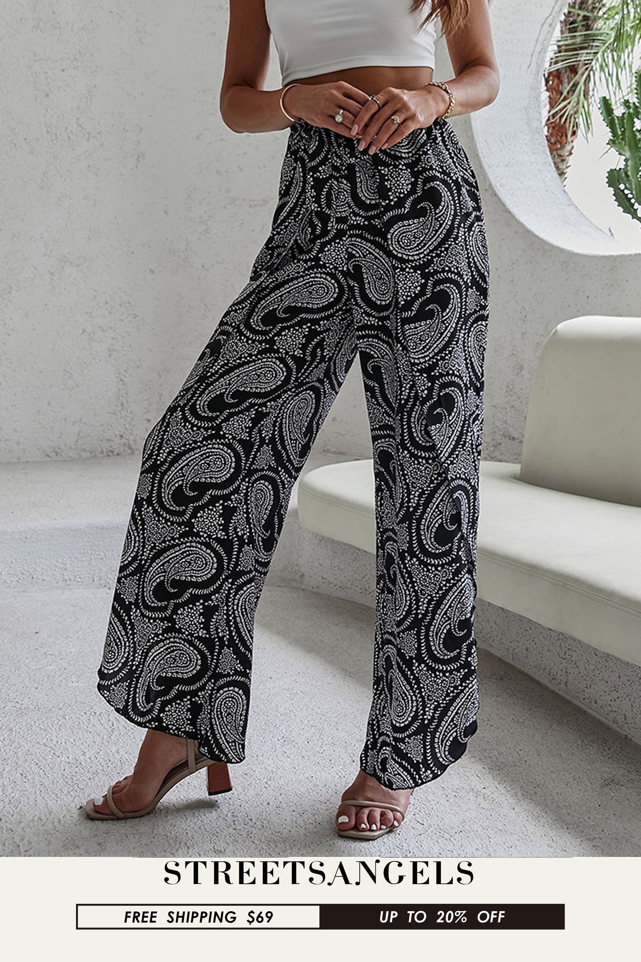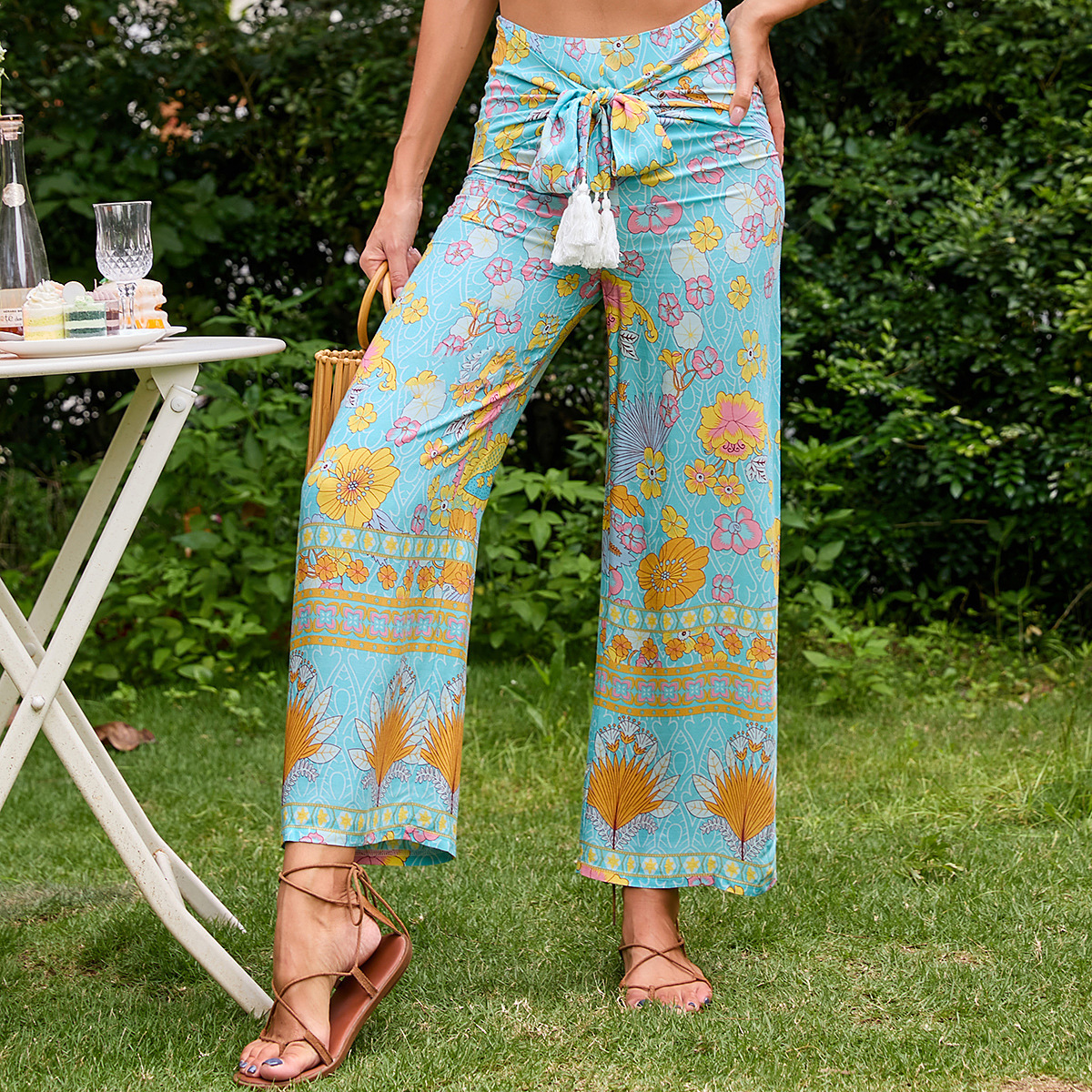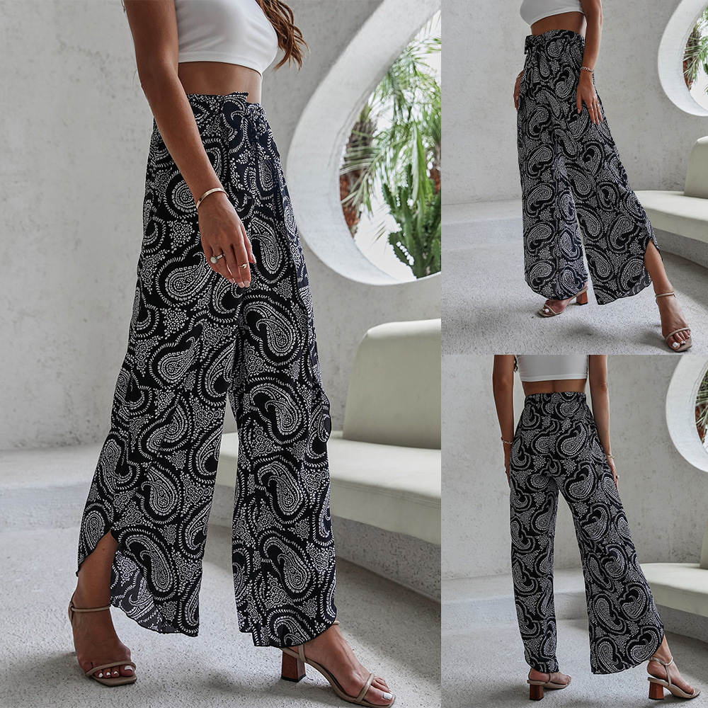 Women Leisure Printing High Waist Beach Wide Leg Pants