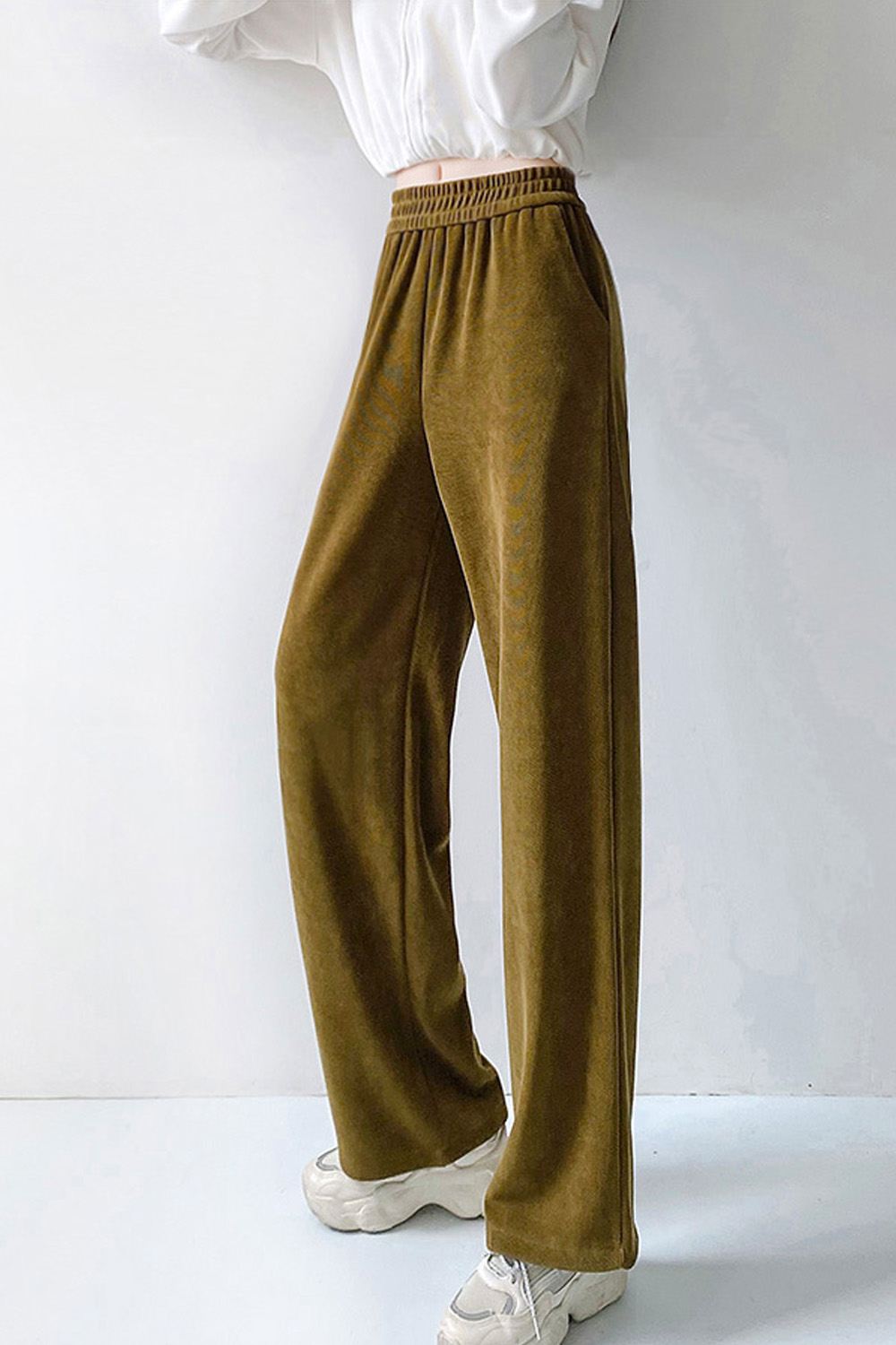 Corduroy Elastic Waist Casual Solid Color High Waist Slim Flared Pants