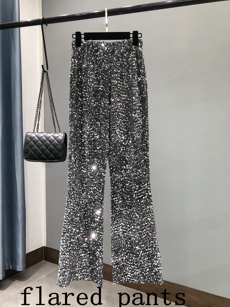 High Waisted Loose Micro Flared Tall Waist Trousers of Silver Pants